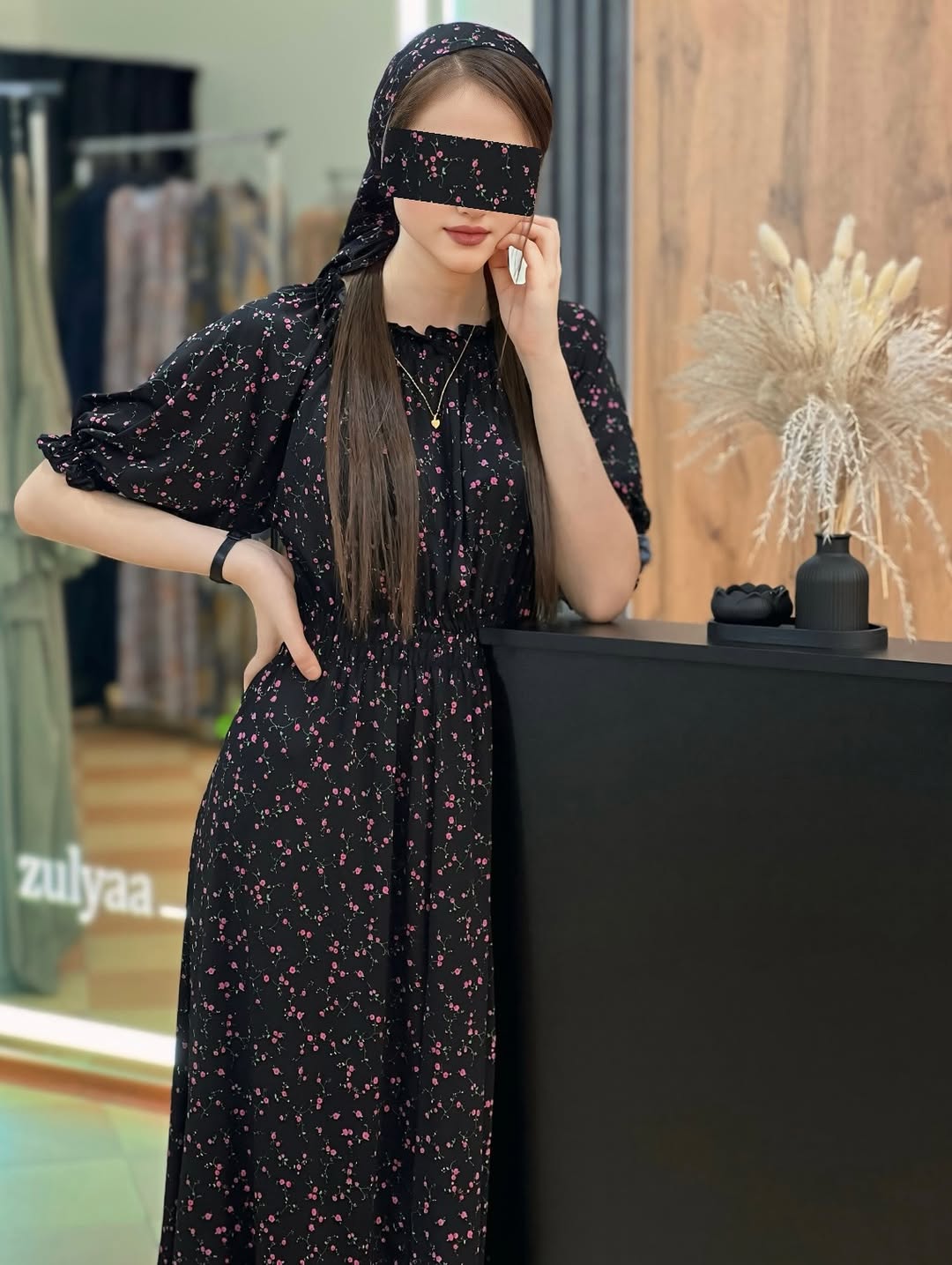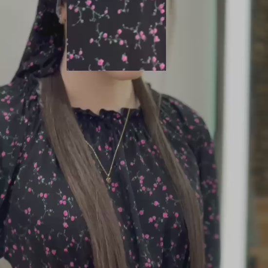 Avec ses fleurs délicates, sa coupe longue et confortable, et ses manches légèrement bouffantes, « Selena » est une robe parfaite pour être féminine, douce et naturelle.